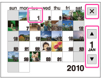 コントロールボタンで日付を選び、中央の