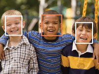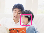 カメラが人物の顔を判別して、フォーカス/フラッシュ/明るさ(EV補正)/色合い(ホワイトバランス)/赤目軽減発光の調整をします。