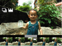 本機を左右に傾けることにより、連写した画像を動画のように見る。