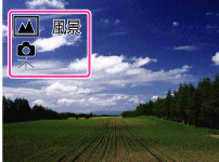 おまかせシーン認識では、シーンを認識したときと状況を認識したときでマークの出る位置が異なります。認識されたシーンは、上段に
