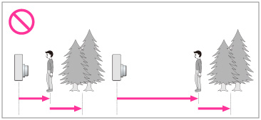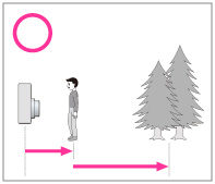 イラストのように被写体と背景の間の距離を大きくとると、背景をぼかして撮影できます。被写体と本機の距離を、画面に表示される推奨距離内におさめてください。