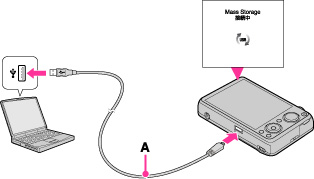 本機とパソコンをマルチ端子専用USBケーブル(付属)(A)で接続する