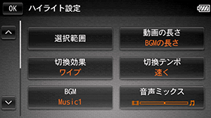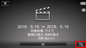 をタッチすると、BGM、動画の長さ、切替効果などの変更ができます。