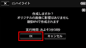 - [OK]をタッチすると、「作成しますか?」と表示され、作成時間の目安が表示されます。[OK]をタッチすると作成が開始されます。