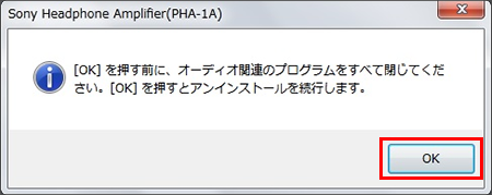 - オーディオ関連のプログラムを閉じた後に「OK」をクリックします。