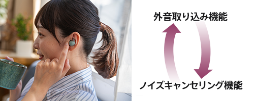 自分の好きなタイミングでノイズキャンセリング/外音取り込みを切り替える