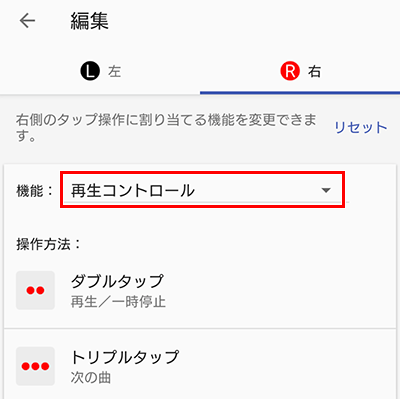 右側のタッチセンサーで外音コントロールを行いたい場合はR側のタッチセンサーに設定します。