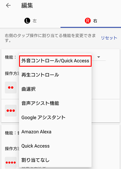 L側のタッチセンサーの機能を[外音コントロール/Quick Access]を設定する