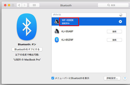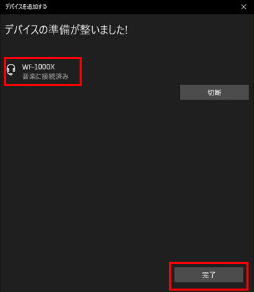 [WF-1000X]の下に「接続済み」と表示されたことを確認してください。