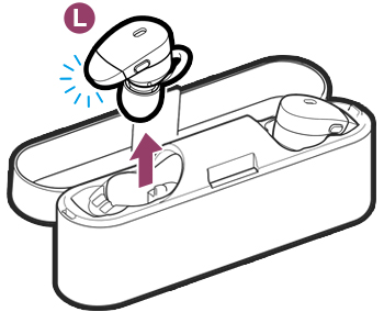 L側のみを充電ケースから取り外す
