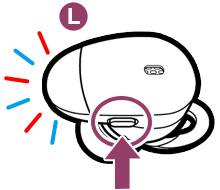 L側のボタンを、青と赤のランプが交互に点滅するまで押し続ける(約7秒)