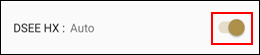 - [Headphones Connect]アプリ([サウンド]タブ内)の[DSEE HX]設定をオンに切り替えます。オンにするとDSEE HX:Autoと表示されます。