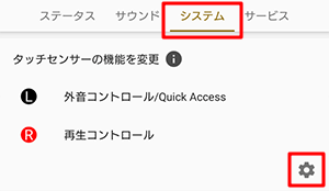[システム]タブを選択し、「タッチセンサーの機能を変更」の