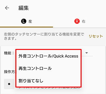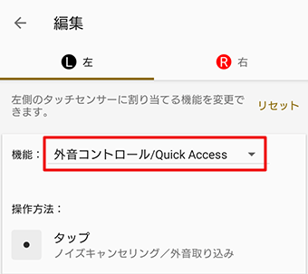 L側のタッチセンサーの機能を[外音コントロール/Quick Access]を設定する