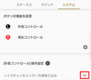 [サウンド]タブを選択し、[外音コントロール]の[外音取り込み]を選択する