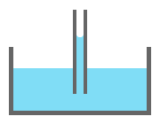 毛細管現象とは、液体の表面張力の作用で、髪の毛のように細い管を液体が伝わっていく現象のことを指します。二本の箸を合わせてその先端を水につけると、箸の隙間を水が上がっていくのは毛細管現象の一例です。本体の合わせ目のような、ごく狭いすき間に液体が付着すると、毛細管現象によって液体が内部に入り込んで思わぬ故障の原因となることがあります。