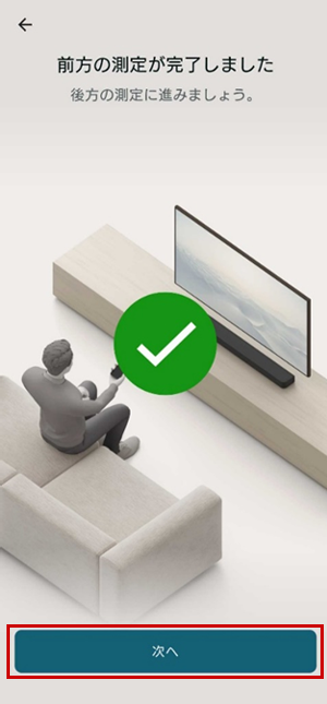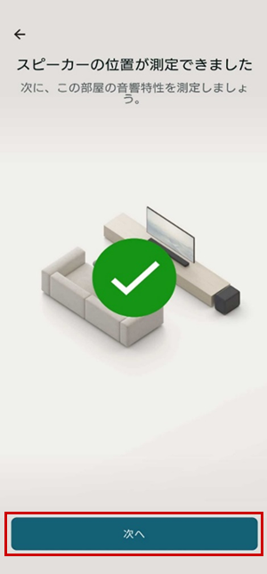 「スピーカーの位置が測定できました」の画面が表示されたら、[次へ] をタップします。