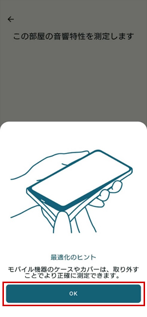 「この部屋の音響特性を測定します」 の画面が表示されたら、[OK] をタップします。