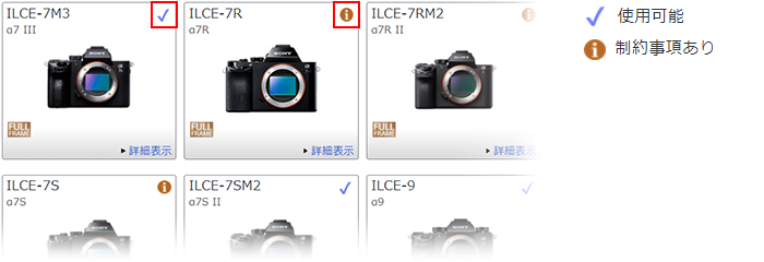 」アイコンのある製品にはカメラ本体に制限事項があります。「