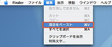 - 画面上部の「編集」メニューから「項目をペースト」をクリックします。