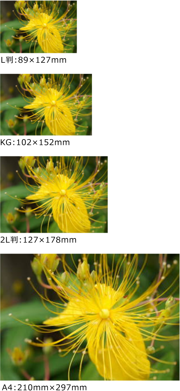 実際にA4やL判に印刷した場合の印刷範囲を比べてみましょう。