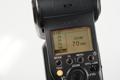 オートズームに設定した場合、外部フラッシュをオフカメラフラッシュとして使うと、レンズの焦点距離に関わらず、自動で広角の設定になりますのでご注意ください。