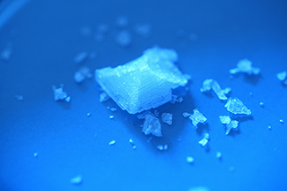自然光の部屋の中で撮影した塩の結晶です。光源が太陽光なので、5500Kで本来の白さが出ました。2500Kに設定すると青みが強く写り、8000Kでは赤みがかってきます。