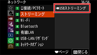 USBストリーミング]で[出力解像度/フレームレート]と[ストリーミング時の動画記録]を設定する。