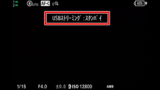 カメラの画面に[USBストリーミング:スタンバイ]が表示され、配信スタンバイ状態に切り換わる。