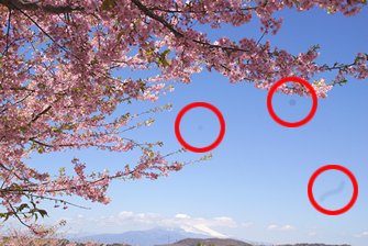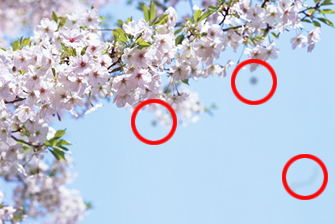 イメージセンサーに小さなゴミやホコリがつくと、写真や動画に黒いシミのようなものが写ってしまいます。