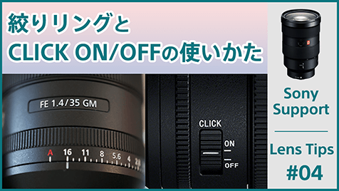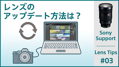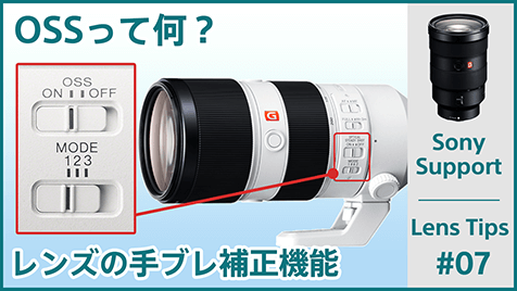 レンズTIPS レンズTIPS 「レンズにあるこのスイッチはどうやって使うの?」「レンズのアップデートはどうやるの?」など、日頃から疑問に思っていることはありませんか?このコンテンツでは、レンズを使いこなすためのさまざまな情報を紹介します。 ボディ、レンズともに35mmフルサイズとAPS-Cサイズフォーマットがあり、Eマウントボディであれば、どちらのフォーマットのレンズも使えます。設定や注意点、レンズ名称からわかるフォーマットの見分け方などを説明しています。 For more detail Eマウントのボディにマウントアダプターを装着すれば、Aマウントレンズが使えます。マウントアダプターの装着方法や使用時の注意点などを説明しています。 For more detail レンズをアップデートするには、レンズをカメラに装着した状態でアップデートプログラムを実行します。レンズのアップデート方法やバージョン確認方法などを説明しています。 For more detail 絞りリングがあるレンズでは、レンズ側で絞り(F値)の変更ができます。IRIS LOCKスイッチやCLICK ON/OFFスイッチの使いかたも説明しています。 For more detail フォーカスモードスイッチがあるレンズでは、レンズでAF(オートフォーカス)/MF(マニュアルフォーカス)の切り換えができます。カメラ側のAF/MFの設定との関係などについても説明しています。 For more detail AF中にフォーカスホールドボタンを押すとピントが固定され、そのままのピントでシャッターを切れます。カスタムキー設定で、フォーカスホールドボタンに別の機能を割り当てることも可能です。フォーカスホールドとAFオンの違いについても説明しています。 For more detail OSSはOptical Steady Shotの略で、レンズ内光学式手ブレ補正機構のことです。レンズの焦点距離と手ブレの関係や、手ブレ補正スイッチ、流し撮りの設定ができるMODEスイッチについて説明しています。 For more detail パワーズームレンズは電動ズームレンズです。速度を一定に保ったなめらかなズーム操作ができるので、動画撮影にもおすすめです。カメラやリモコンからのズーム操作や、パワーズームレンズのラインナップを紹介しています。 For more detail レンズ選びナビ レンズの基礎知識やレンズの種類などを詳しく解説。お気に入りの一本を見つけるお手伝いをします。