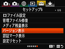 レンズのアップデート一覧カメラのバージョン確認方法と同じです。カメラにレンズを装着してカメラのMENUからバージョンを確認すると、カメラと、装着したレンズのバージョンが同じ画面で確認できます。
