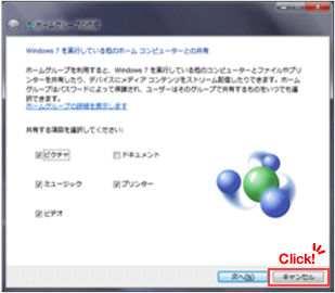 ※ホームグループを設定する場合は、パソコンの取扱説明書をご確認ください。