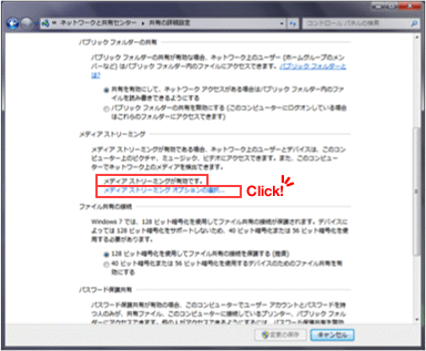 「メディアストリーミング」の「メディアストリーミング オプションの選択…」をクリックします。