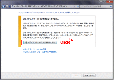 ※メディアストリーミングが有効になっている場合は、 「メディアストリーミングを有効にする」は表示されません。