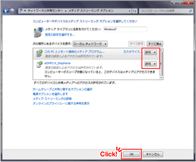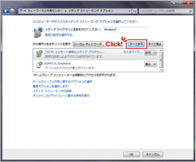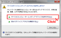「すべてのコンピュータとメディアデバイスを許可する」をクリックします。