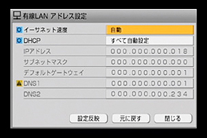 [有効にするLAN] − [有線LAN] − [有線LAN設定]を選ぶ。