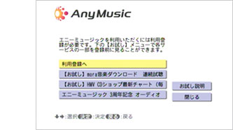 (2) [エニーミュージックへ]が選ばれていることを確認して、決定ボタンを押す。
