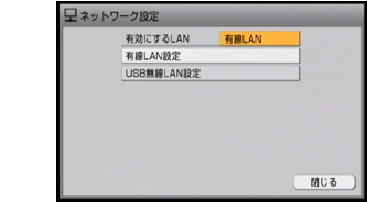 (3) [有効にするLAN]−[有線LAN]を選ぶ。