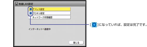 「ネットワーク設定を確認中です」というメッセージが表示されたあと、有線LAN設定画面が表示されます。