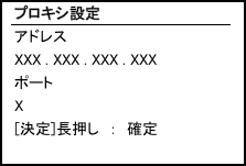 | 5. | アドレスを設定する。 プロバイダが指定するアドレス (IPアドレス) とポート番号を指定し、決定ボタンを長押しします。 ![]() |