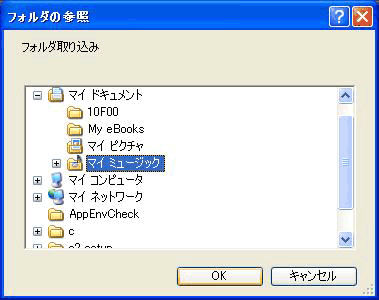 音楽ファイルが保存されているフォルダを選択し[OK]をクリック