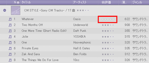 ライブラリ内の[☆評価]で、マウスカーソルを動かしクリックすると評価が反映されます