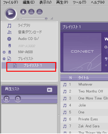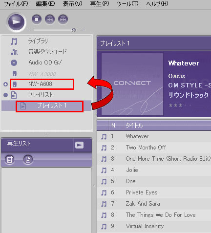 転送したいプレイリストをドラッグアンドドロップにて機器に転送する
