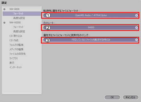転送時に優先するファイルフォーマット