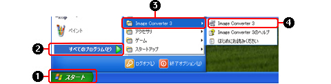 [スタート]-[すべてのプログラム]-[Image Converter 3]-[Image Converter 3]の順に選びます。