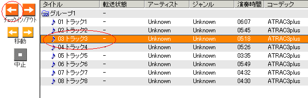 6.) リストの右パネルから、トラック3をクリックし、チェックインボタンをクリックします。