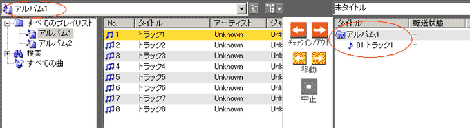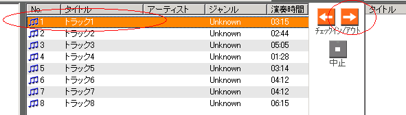 本例では、「トラック1」をネットワークウォークマンへチェックアウトする例を示します。