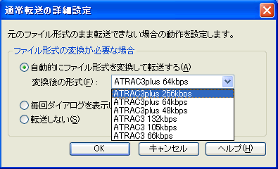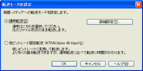 転送される全ての曲がATRAC3plus / 48kbpsモードに変換された後に転送されます。より多くの曲を転送できますが、通常転送に比べて転送に時間がかかります。