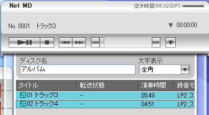Step-3 機器側の画面(右側の画面)から転送したいトラック(曲)を選択します。